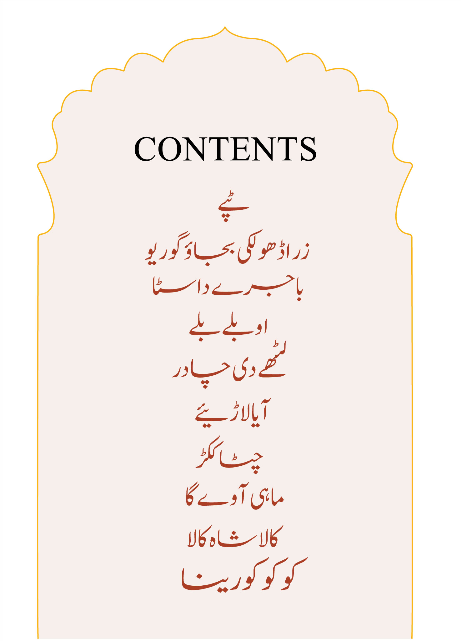 – 10 Songs in Urdu/Roman: This songs book includes 10 popular Dholki songs in Urdu/Roman.