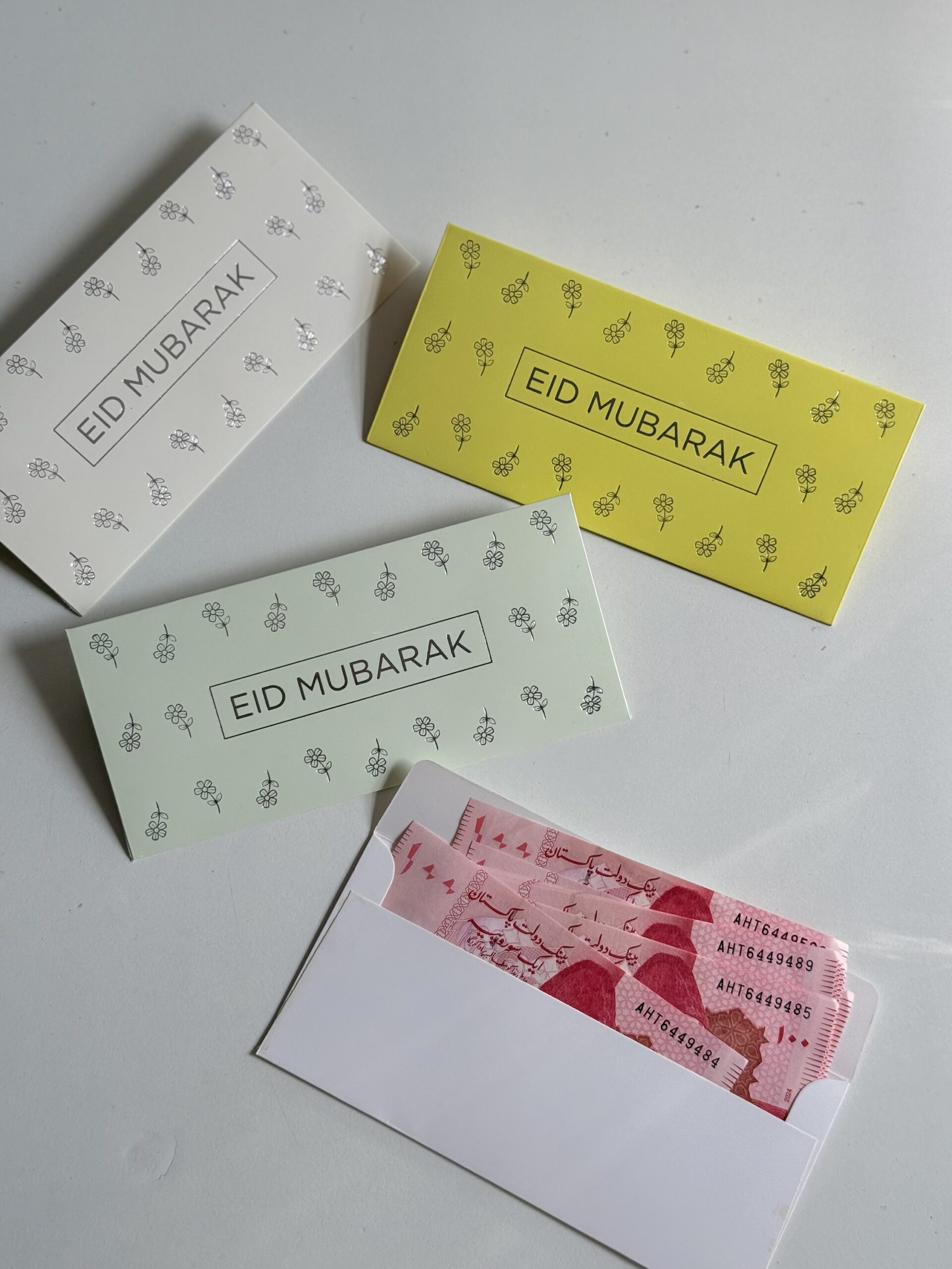 | Color | white, off white, yellow, pistachio, Set of all 4 Envelopes |