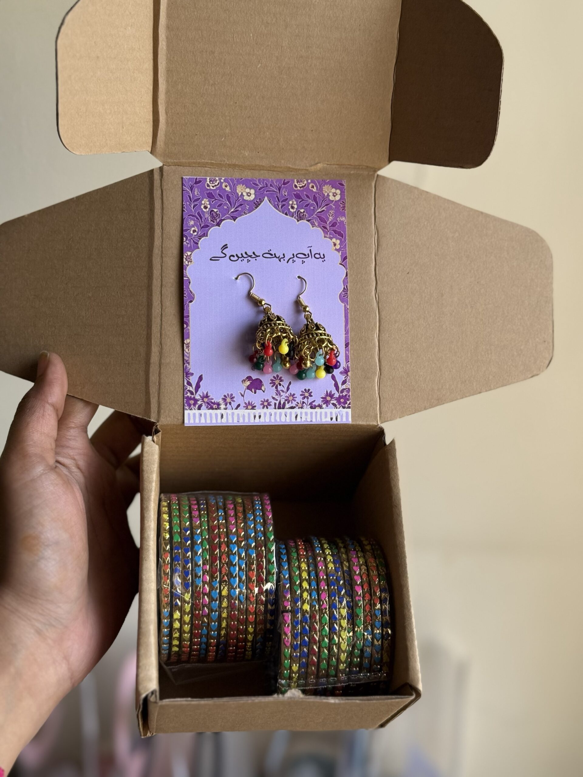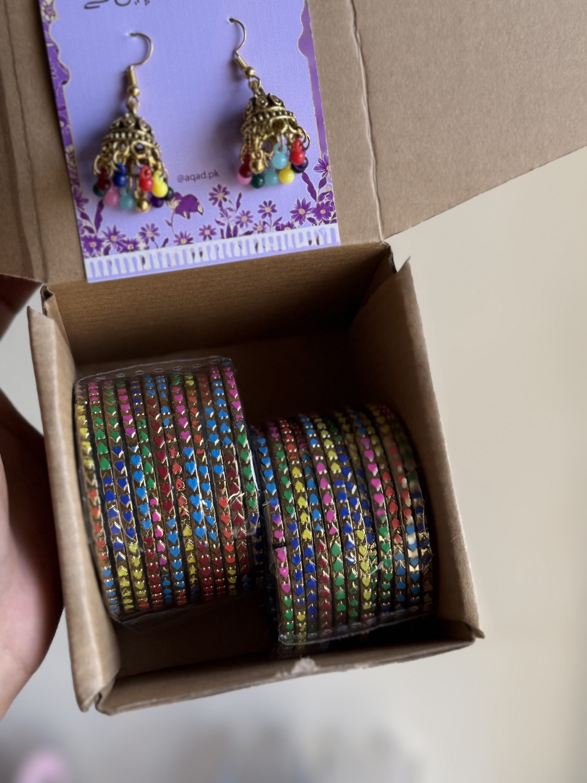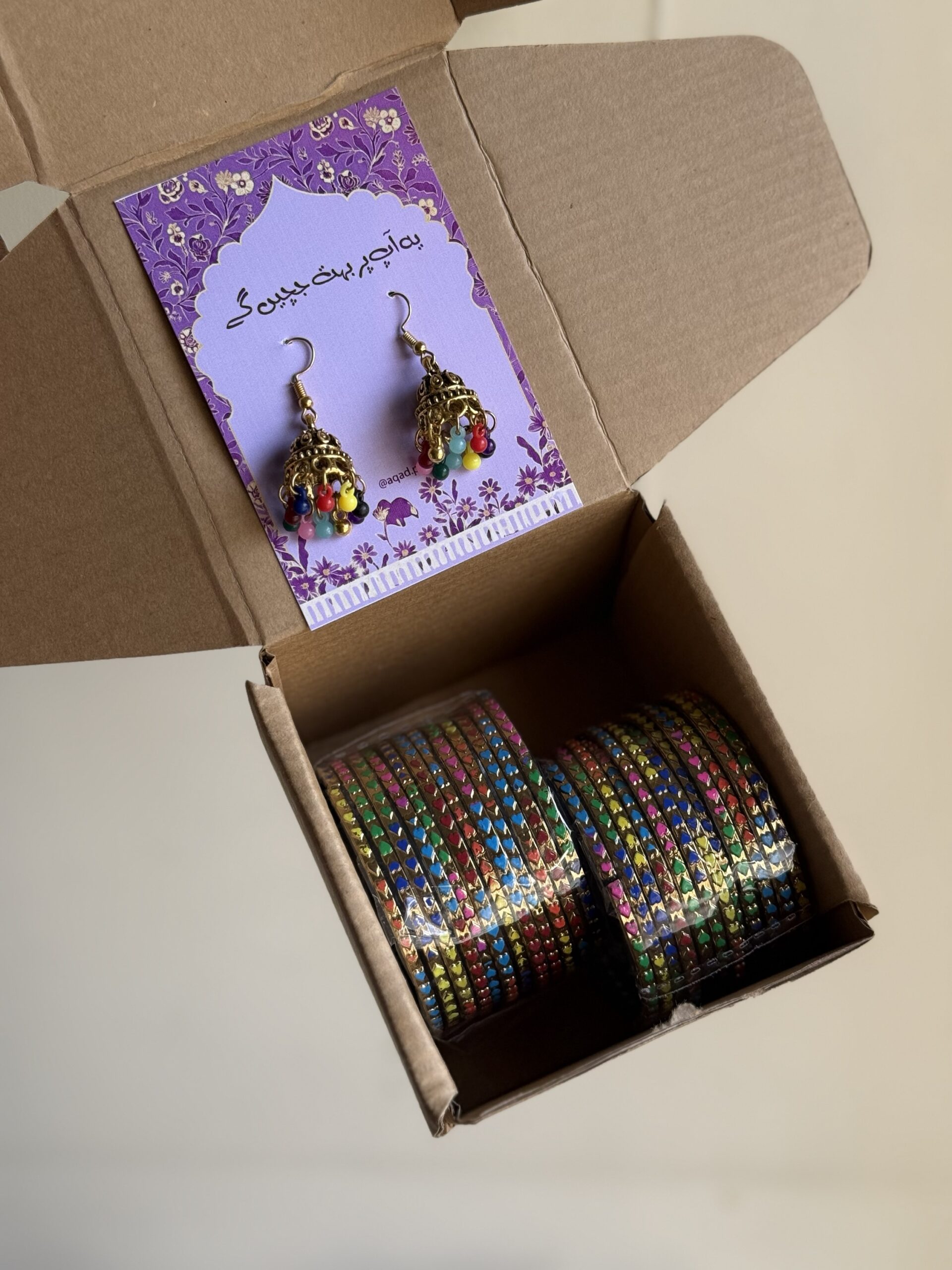 Be the first to review “Multi color chooriyan & Jhumka Gift box”