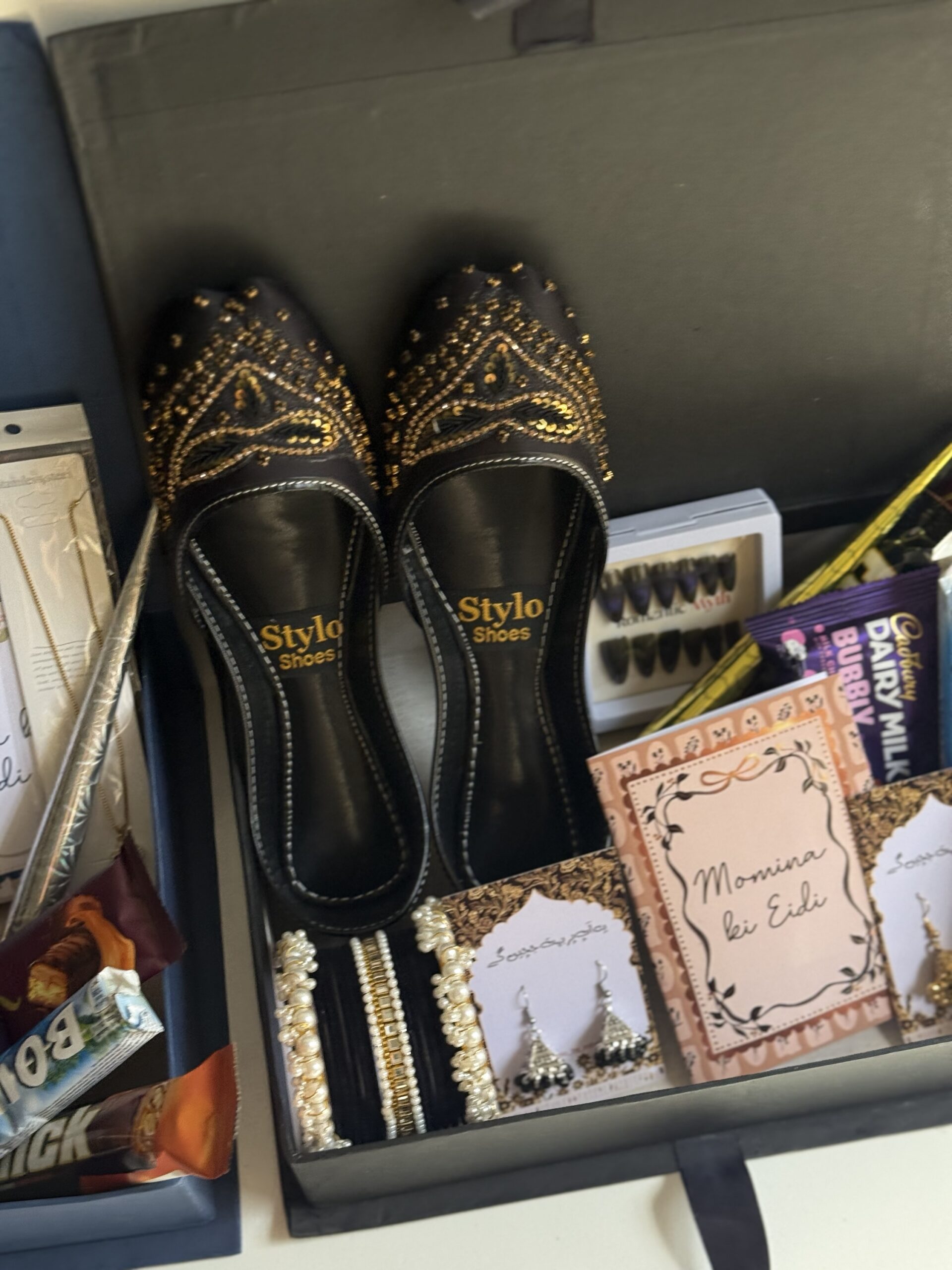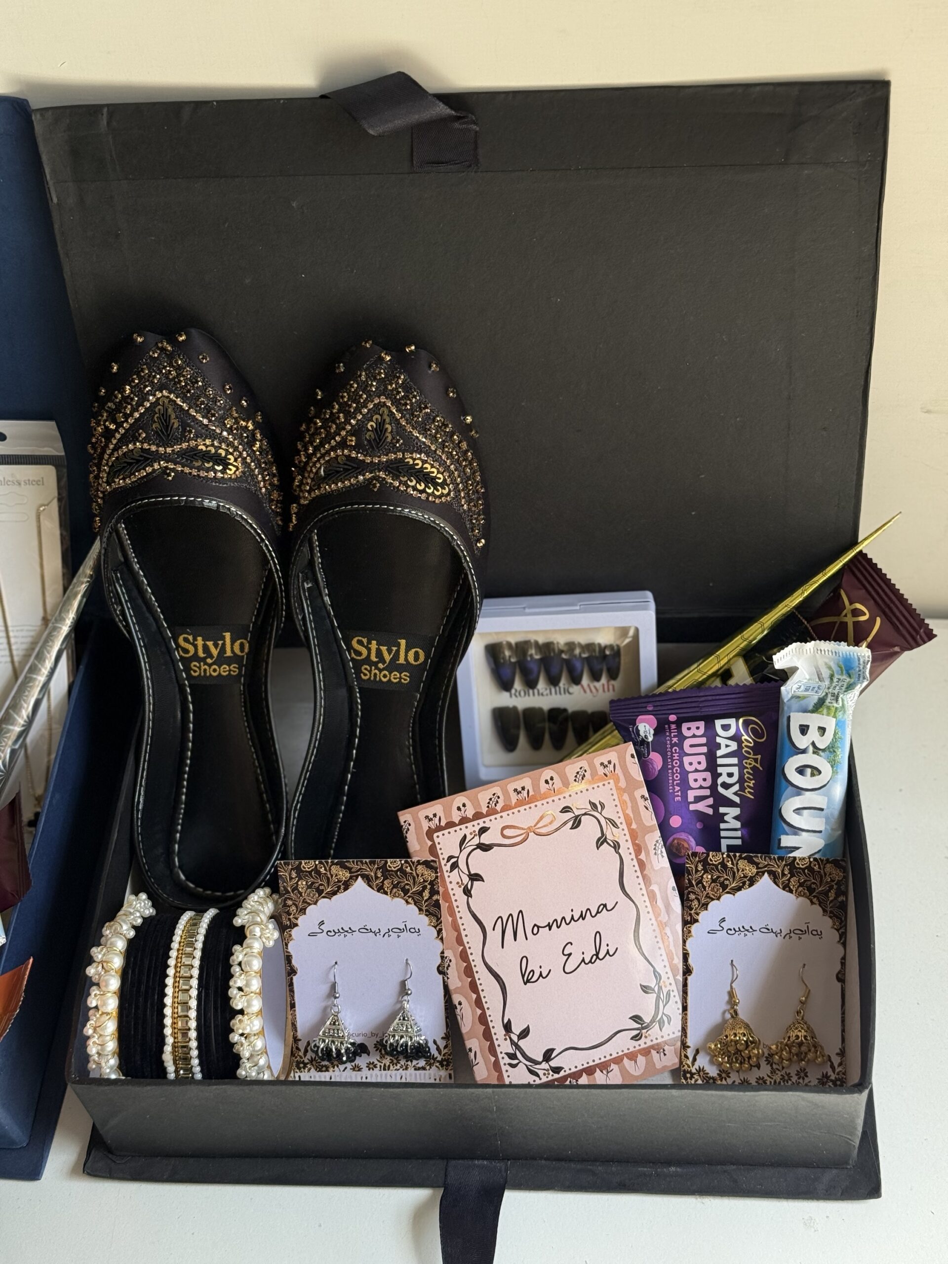 Introducing our luxurious customised Eidi box filled with premium Eid essentials: